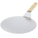With this thin metal pizza peel it's easy to get your pizza or even pie out of the oven and onto the plate. The handle is made of bamboo that is sourced and produced following sustainable standards. . Stainless Steel, Wood.