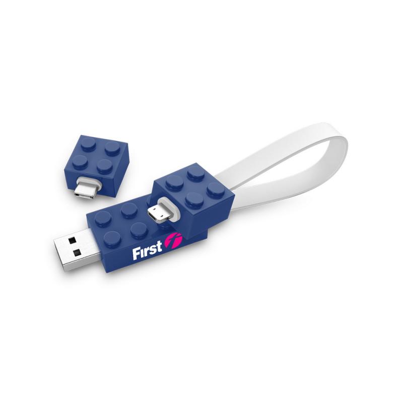 Our Block USB Charging Cable brings some novelty to brand building! This customisable mobile cable set wraps around your key-ring and helps you to charge or connect your phone wherever you are. Available in 3 standard colours, its housing can be customised with your logo or brand name in up to 2 spot colours and the set includes Type-C, lightening and micro USB connectors to work with most smartphones.