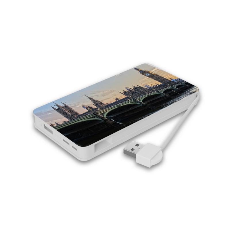 Our eco-friendly travel power bank is the perfect way to display your brand on the go. It is made from 50% wheat straw and 50% PLA (biodegradable polymer), ensuring that you can help to save our planet. The power bank comes with a USB port for all your charging needs, as well as a micro-USB port to charge the battery, which is 4000mAh, giving you enough charge for a long time.The power bank measures 122x66x9mm, meaning it is portable enough to carry around, and it comes with a small wrist strap to carry it around. You can print your branding in 1-4 colour/full colour print on the top, in a 84x50mm print area on the front and back, and it has four LED indicators to show the amount of charge left, as well as a button.